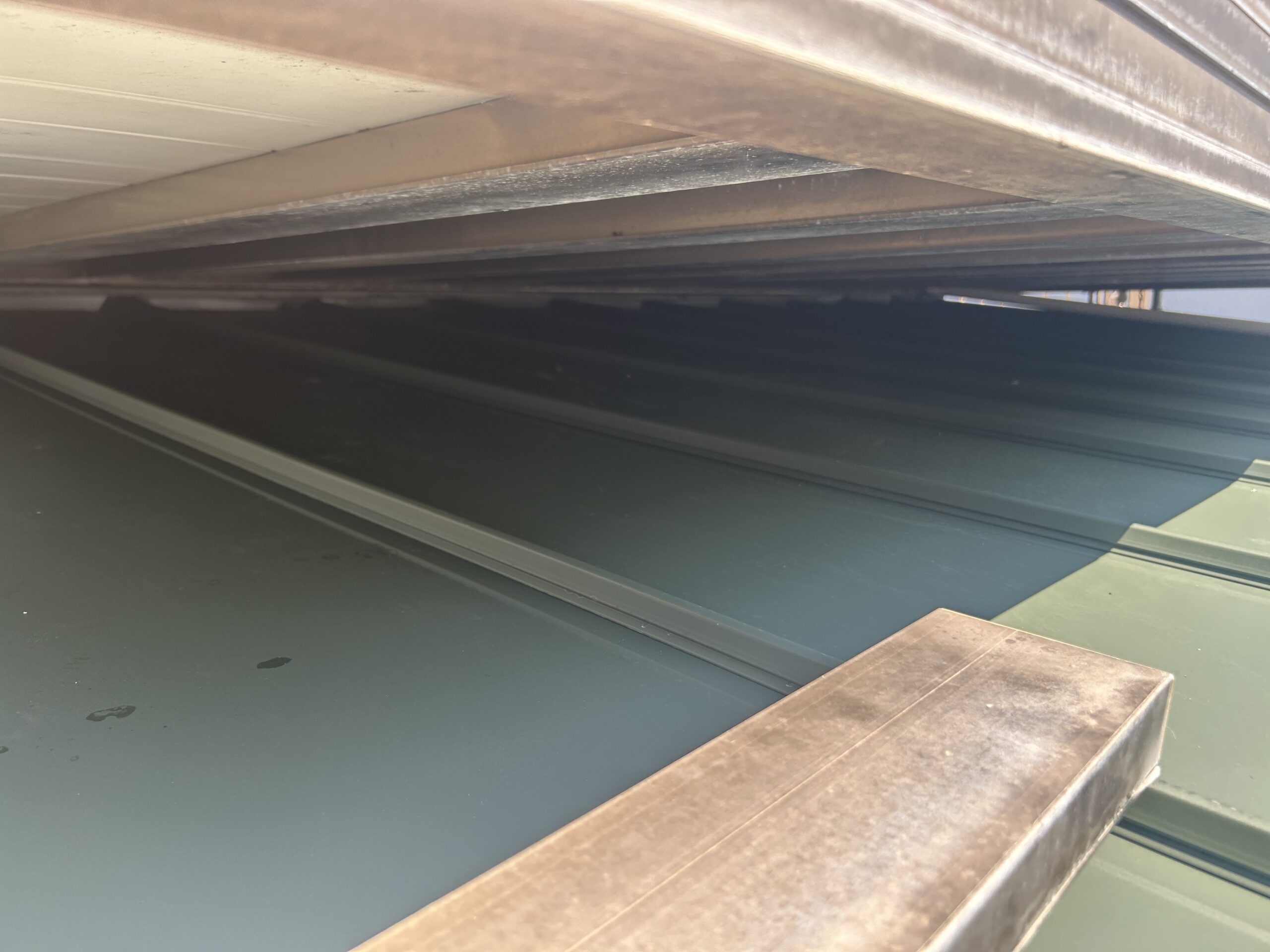 アルミ製のベランダが屋根の上に乗っていたこともあり、ベランダの足が乗っている付近の屋根が歩くと沈んでしまう程ダメージを受けている状態でした。
