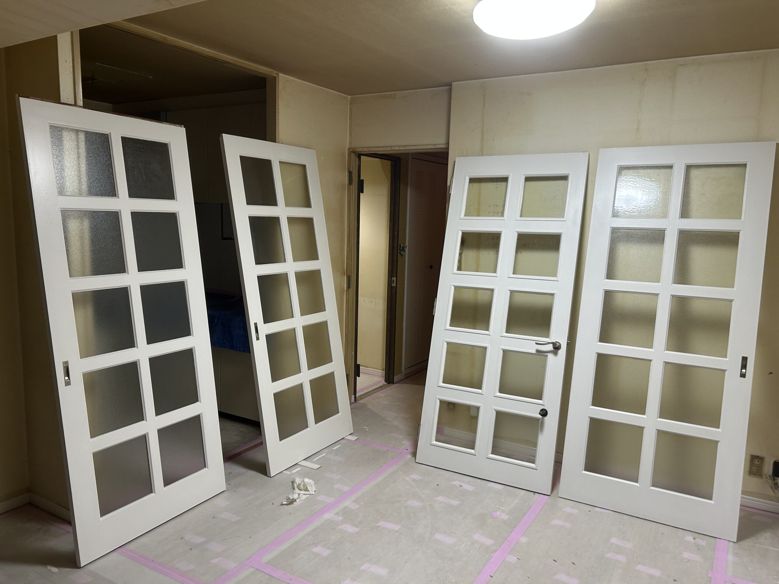 壁紙も白くする予定なので白色で統一感をもたせたいとご希望でしたので白色に塗装させて頂きました!