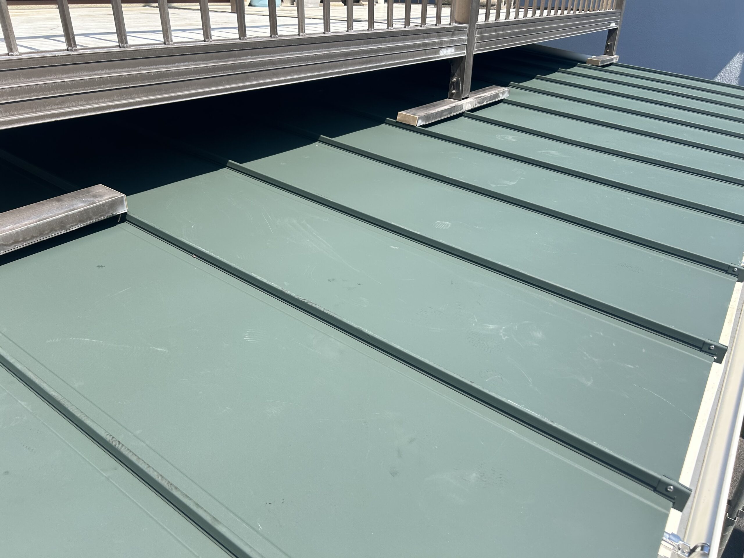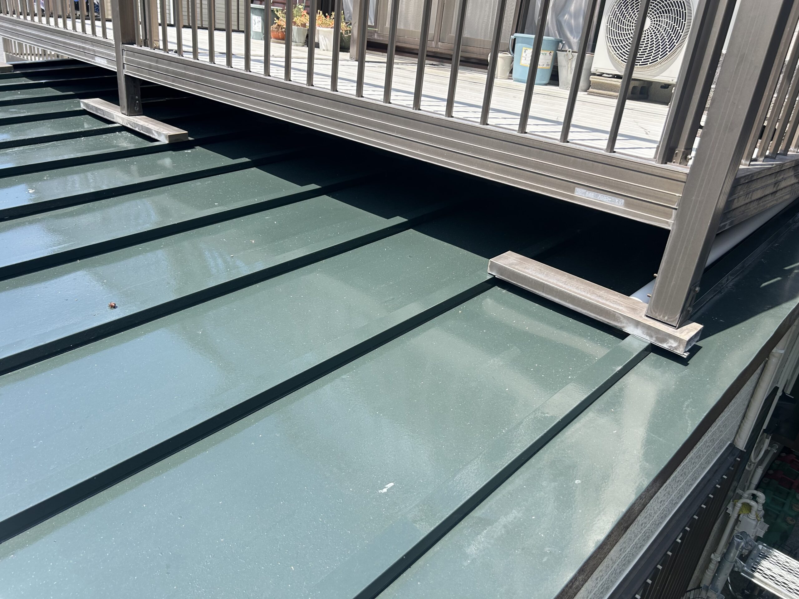 アルミ製のベランダが屋根の上に乗っていたこともあり、ベランダの足が乗っている付近の屋根が歩くと沈んでしまう程ダメージを受けている状態でした。